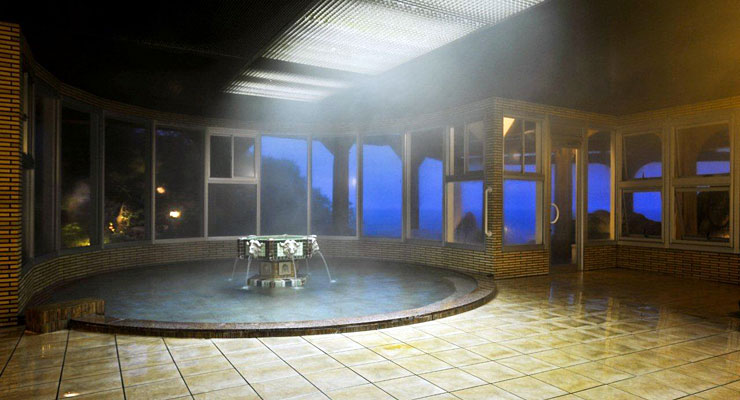 □函館本線の情緒溢れる汽笛の音色やウミネコの鳴き声が旅情をかきたてる露天風呂。