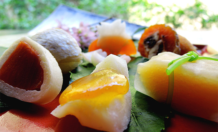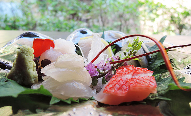 □奥湯河原は山と海の両方の幸が揃う希有な立地、大自然の恩恵をたっぷりと受けた素材の深み。
