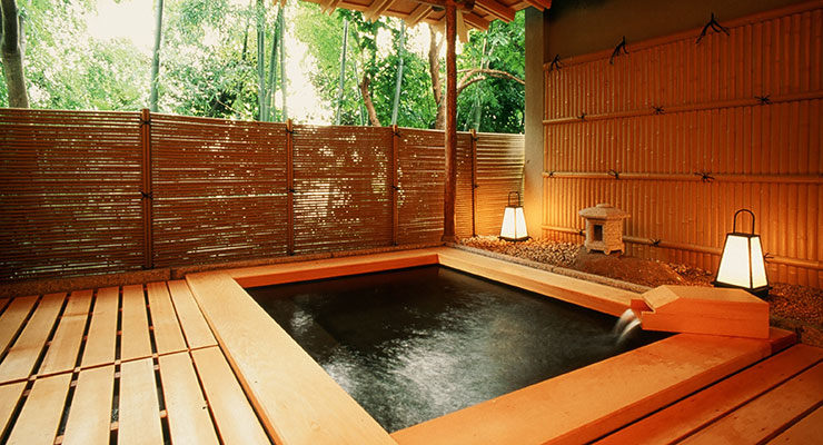 客室はわずか17室。全ての部屋には、山庭に面した源泉露天風呂が付いています。