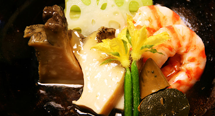 □洗練された器、九谷焼き/山中塗り/輪島塗も楽しみのひとつ。