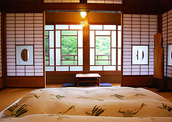 由布院の名宿「 おやど 二本の葦束 」では、日本の美意識の元にありながらも、