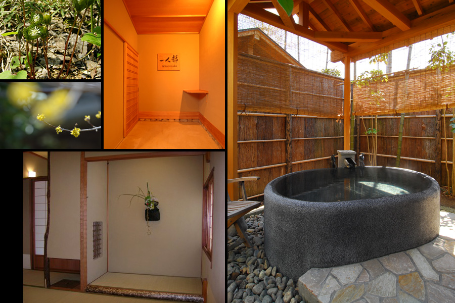 □客室露天風呂は、源泉かけ流しの湯。 - □料理は旬を逃さない、心のこもった月替わりの懐石料理。