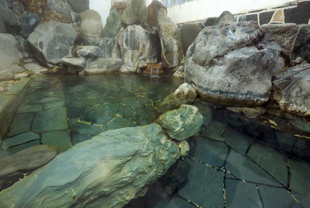 □毎分900Lの豊富な湧出量を誇る無色透明のやわらかなお湯。
