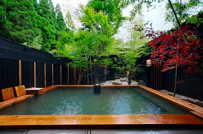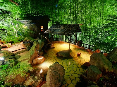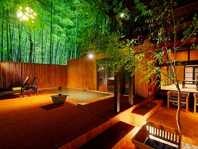 秘境白川源泉 山荘竹ふえは、約四千坪の広大な敷地にたった11室の離れとスパ棟が点在し、