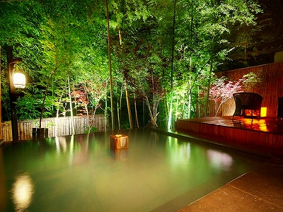 □お二人に会った客室を選択。野趣溢れる巨大露天風呂が自慢。