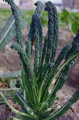 - □裏の畑で自家栽培される新鮮野菜を提供。